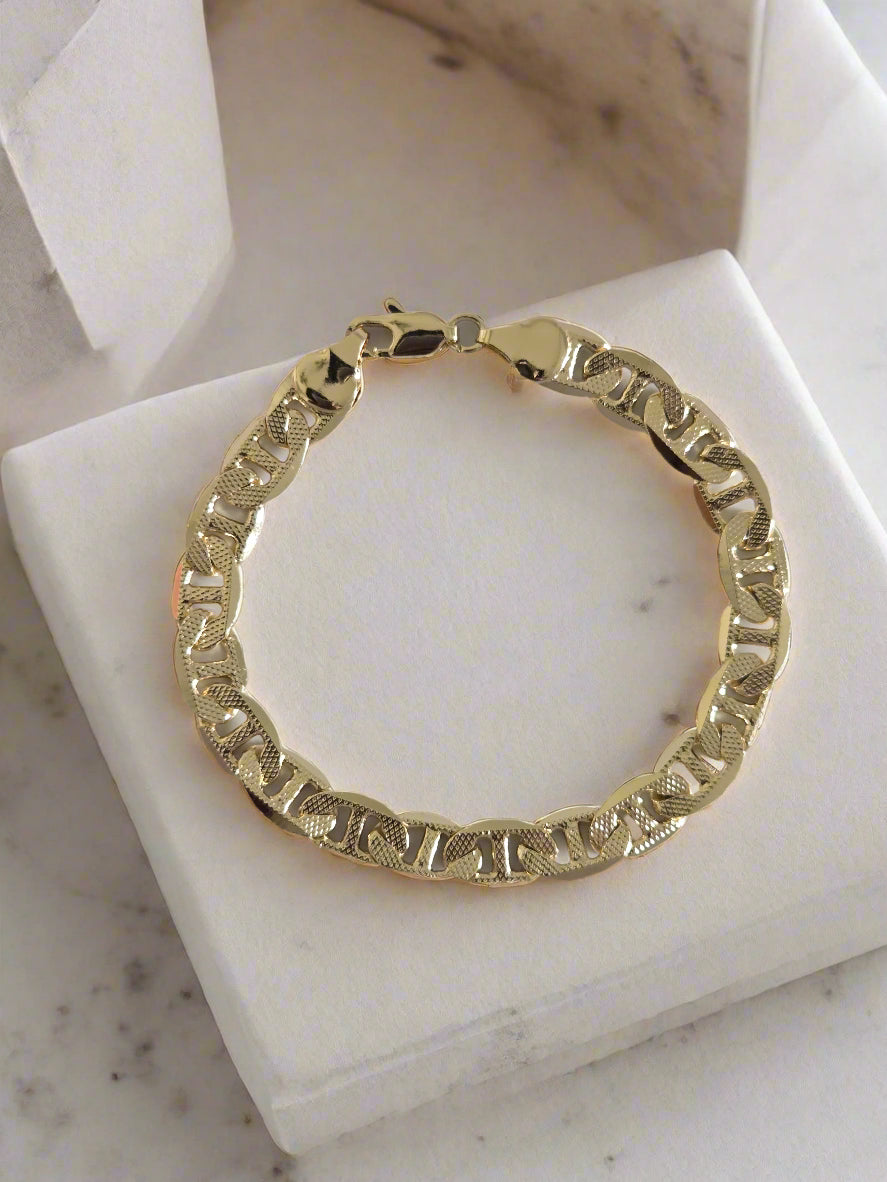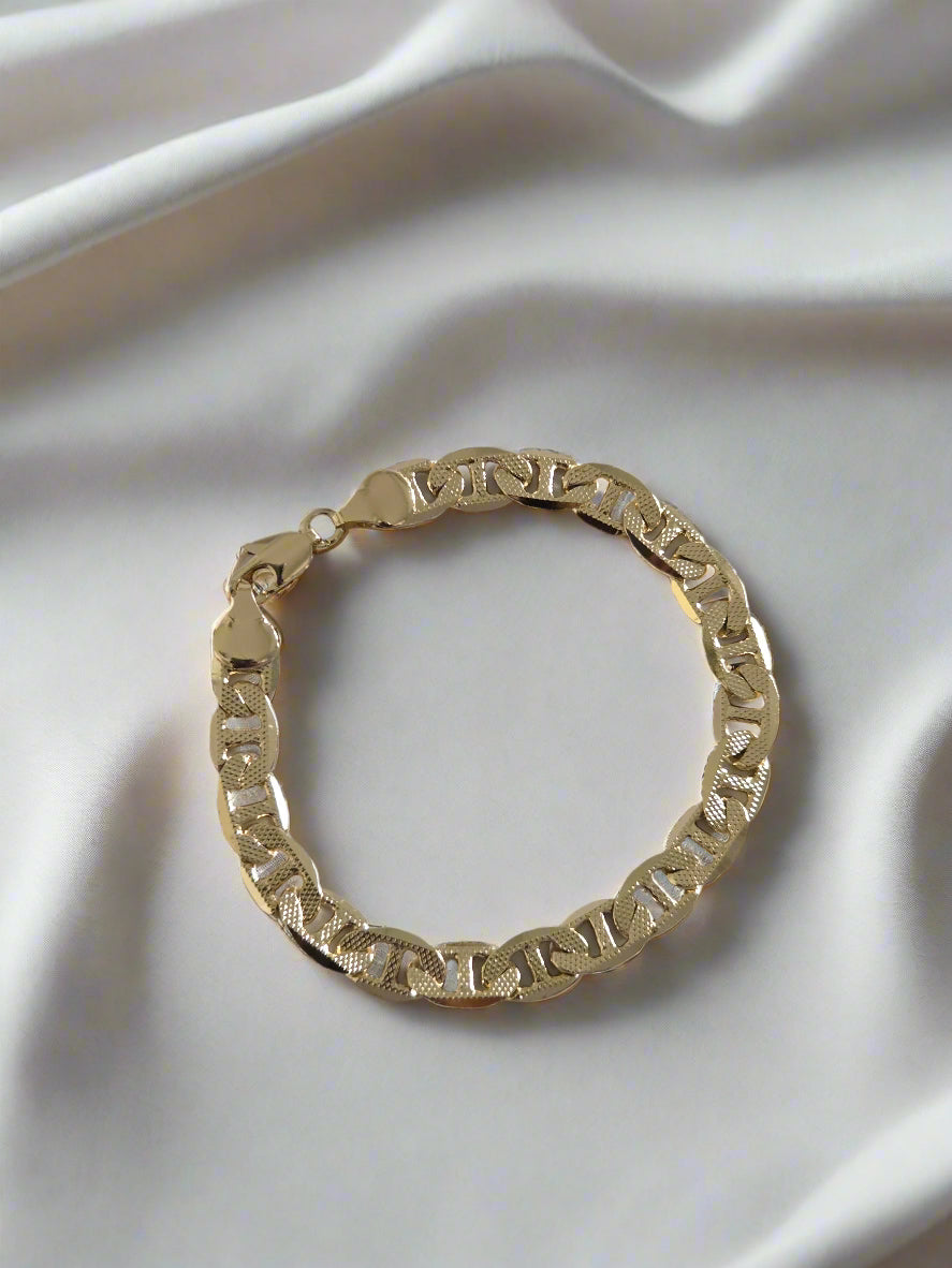 The Aria bracelet is a modern classic, crafted with bold, interlocking gold links that radiate confidence and sophistication. Whether worn alone for a striking statement or layered with delicate pieces for contrast, Aria brings effortless edge to your everyday look. Designed for the woman who lives unapologetically and shines in her own rhythm, this bracelet is timeless, versatile, and unforgettable—just like her.