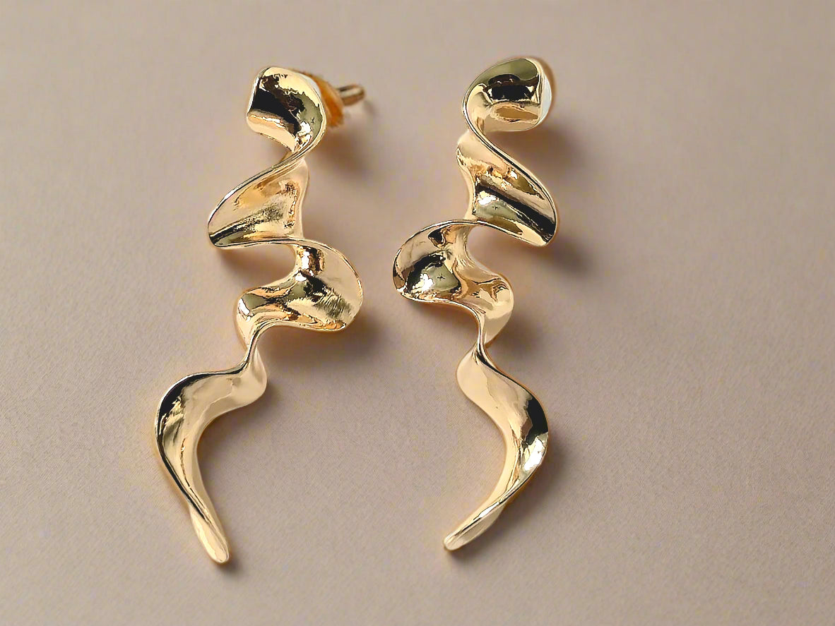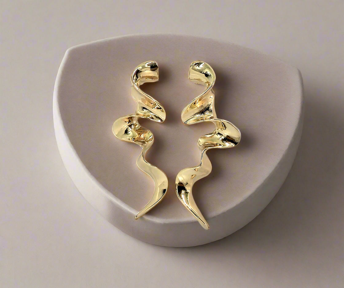 Graceful and captivating, the Chantal earrings feature fluid, sculptural curves that dance with every movement. The high-polish gold-tone finish catches the light beautifully, creating an effortlessly glamorous look. Whether paired with sleek eveningwear or a simple daytime outfit, these statement drops embody modern elegance with an artistic edge.