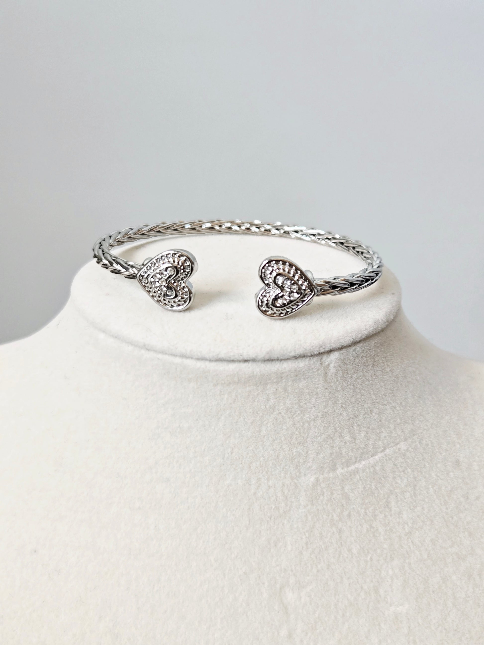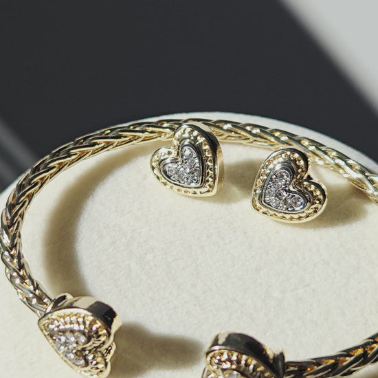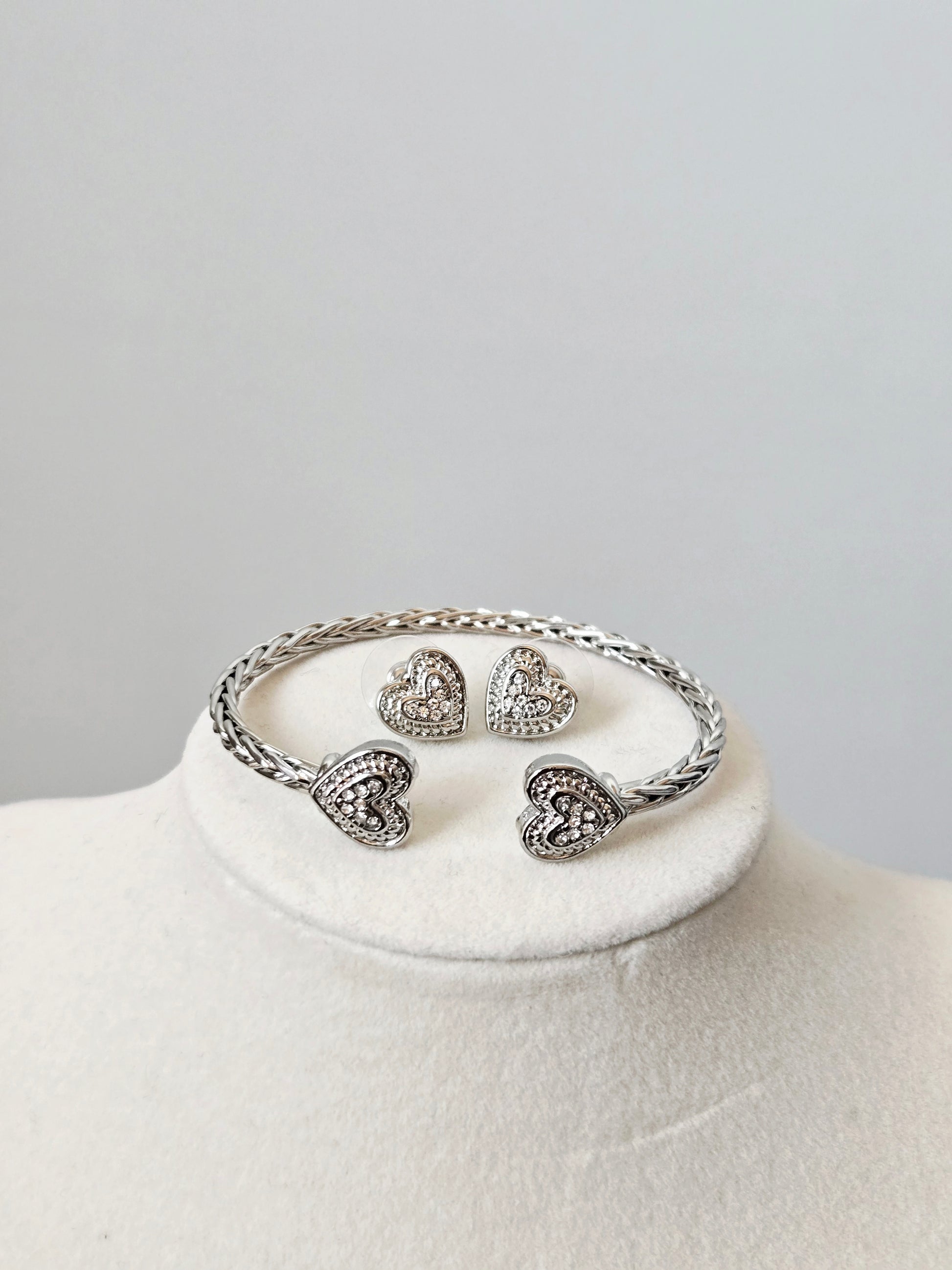Meet Cherish — the set made for the woman who loves pieces that feel meaningful, feminine, and beautifully detailed. This two-piece set includes a braided open cuff bracelet adorned with crystal heart ends and matching stud earrings for a soft, romantic finish.