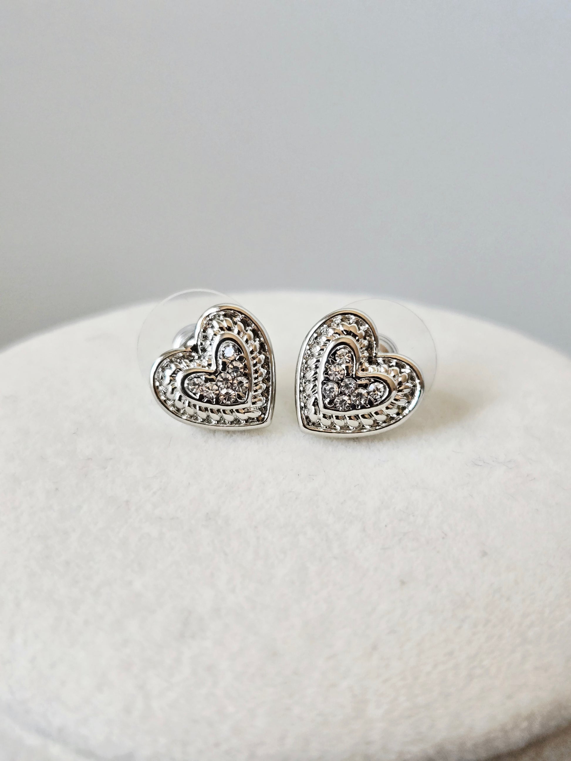 - Earrings: Crystal heart studs with push-back closure