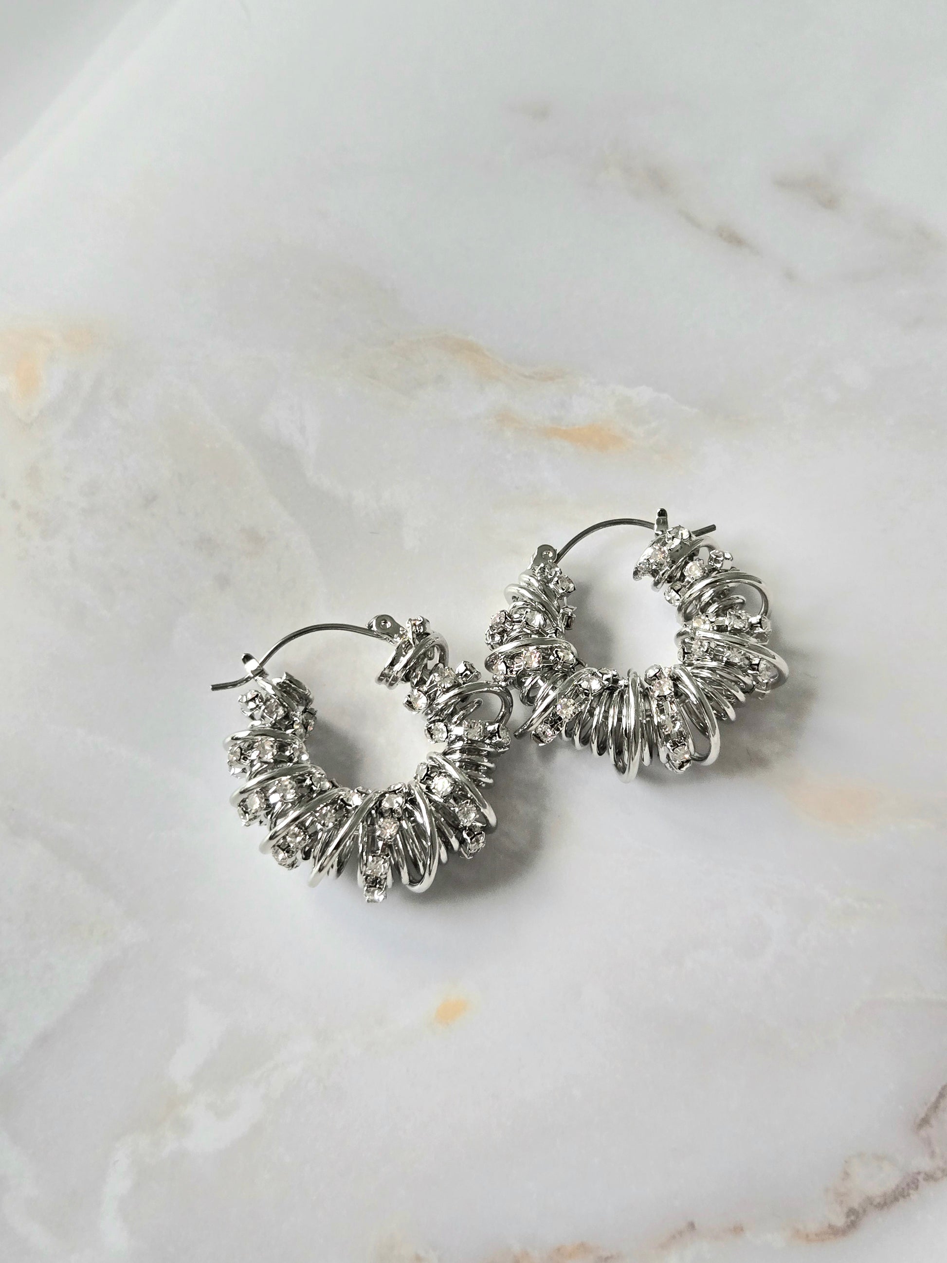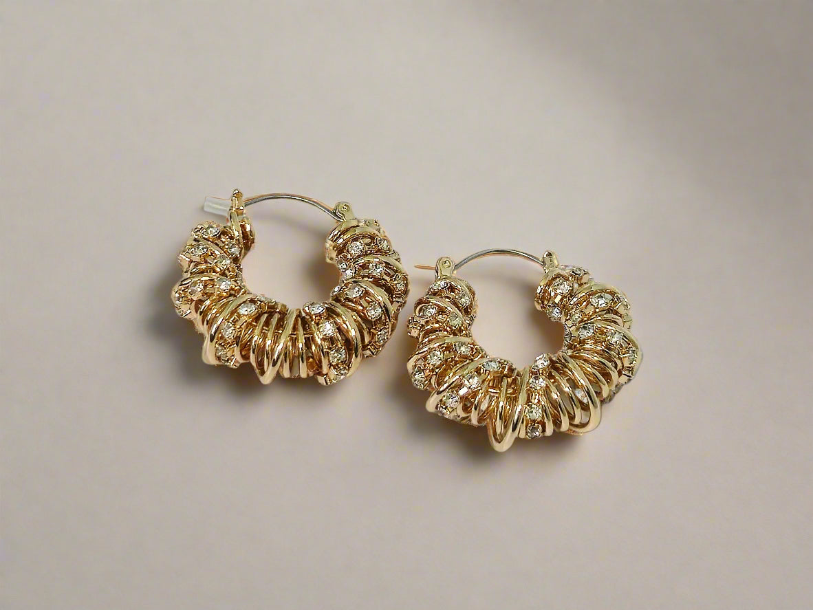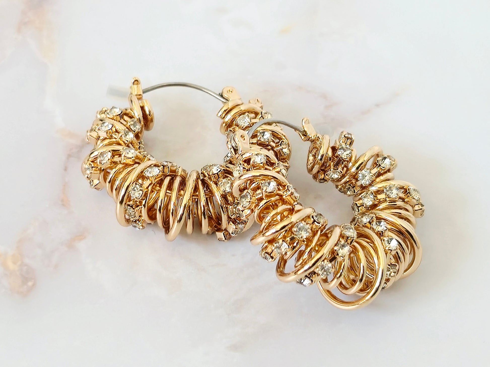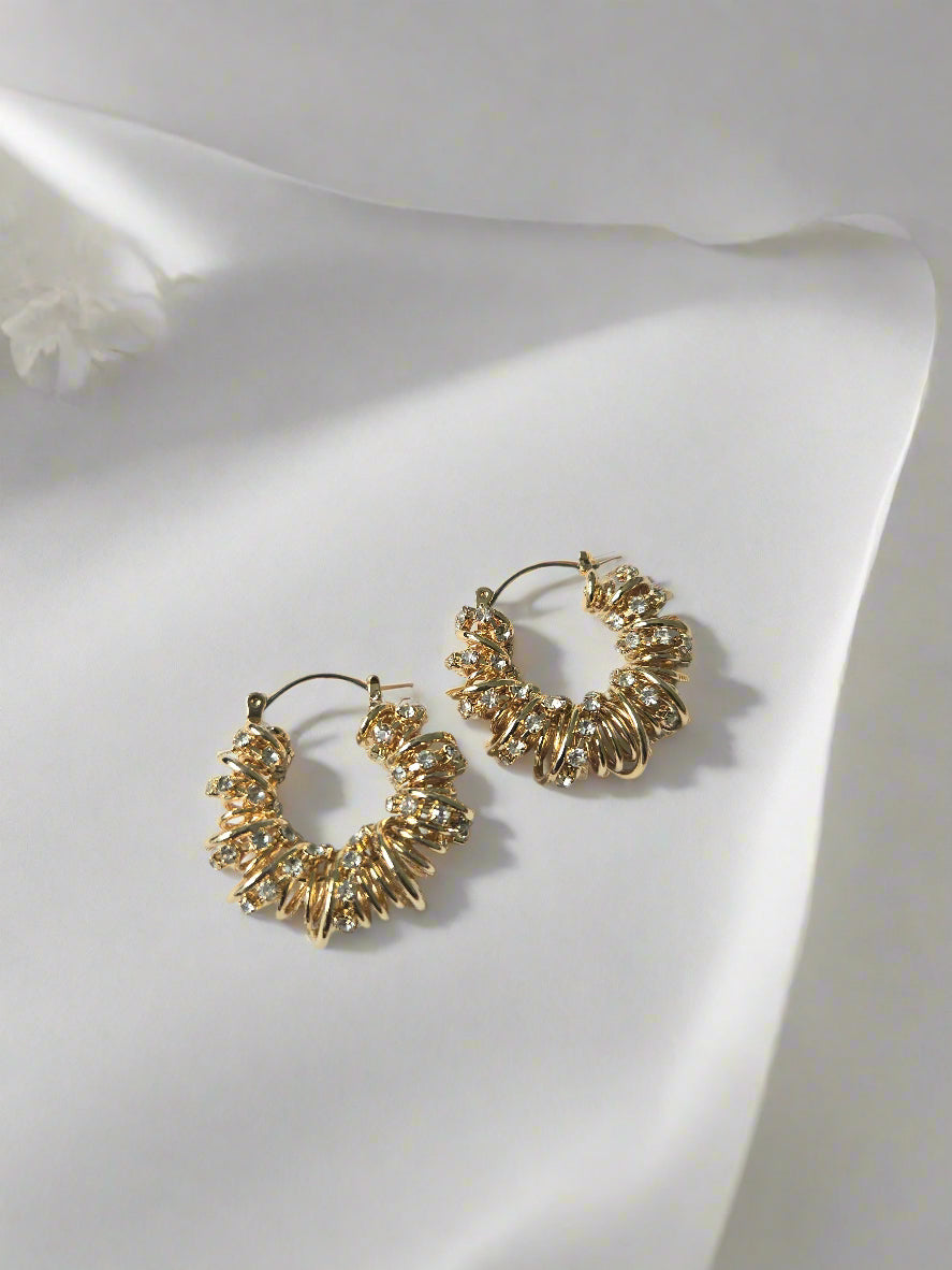 The Halo Hoops bring bold sparkle and dimension to your everyday essentials. Featuring layers of gold or silver loops and faceted crystal accents, these luminous earrings give the illusion of multiple hoops in one — all while remaining lightweight and easy to wear. Perfect for turning heads without saying a word.