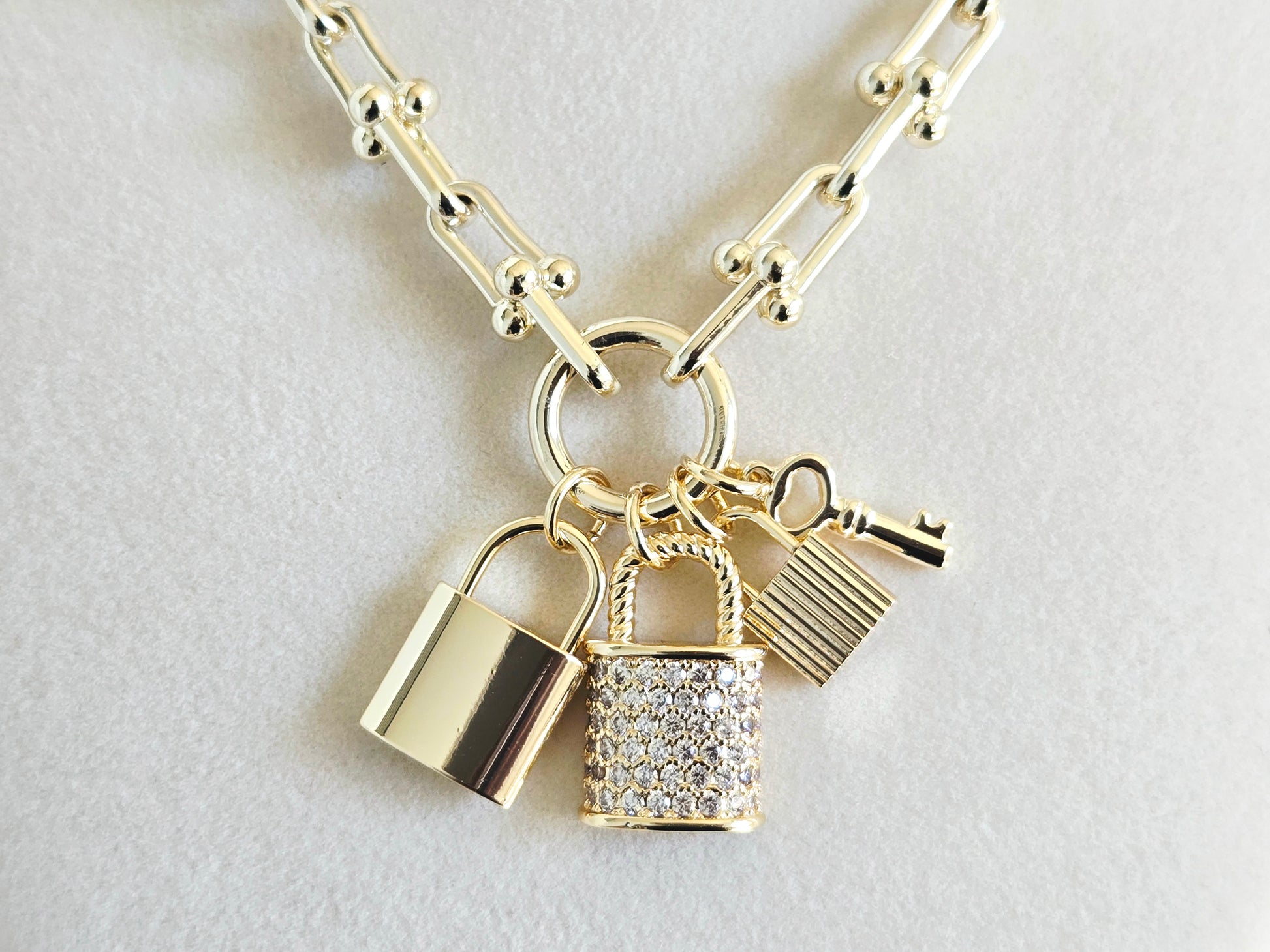 - Includes padlock, crystal lock, and key charms