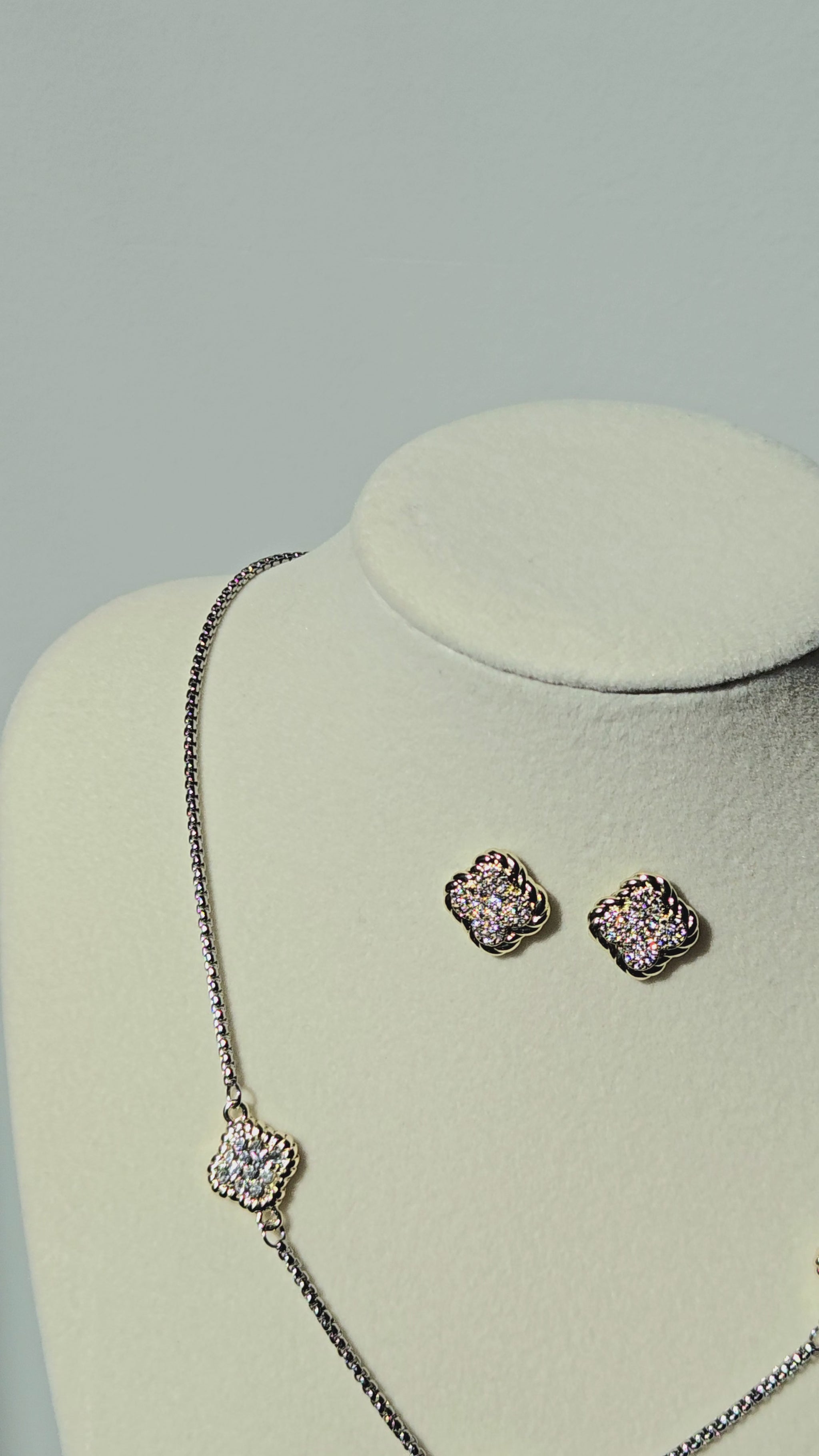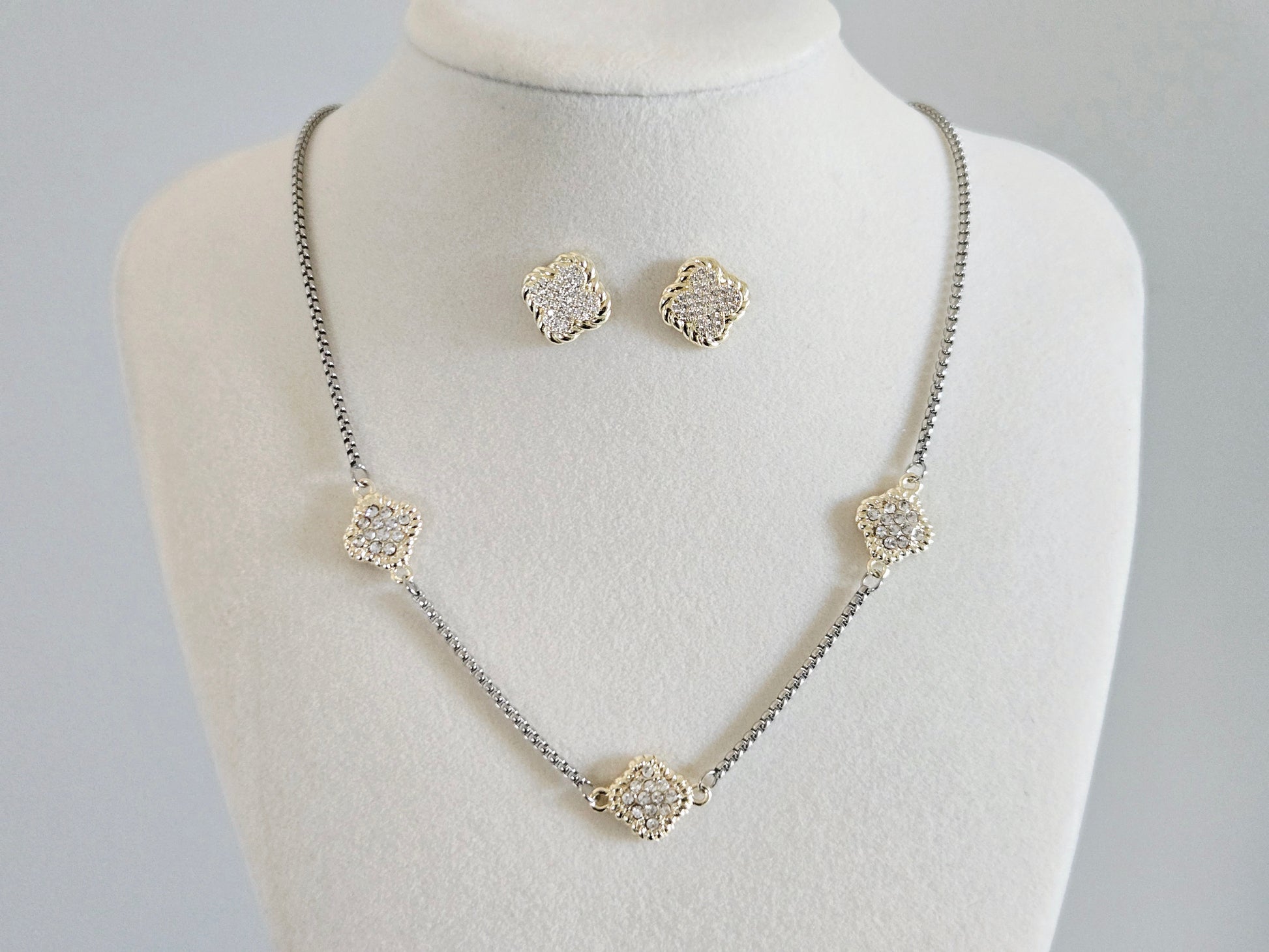 The necklace showcases three radiant accents on a dual-tone chain, while the matching earrings add just the right amount of sparkle. Whether worn to brunch or a special celebration, the Radiance Set is your go-to for effortless sophistication.