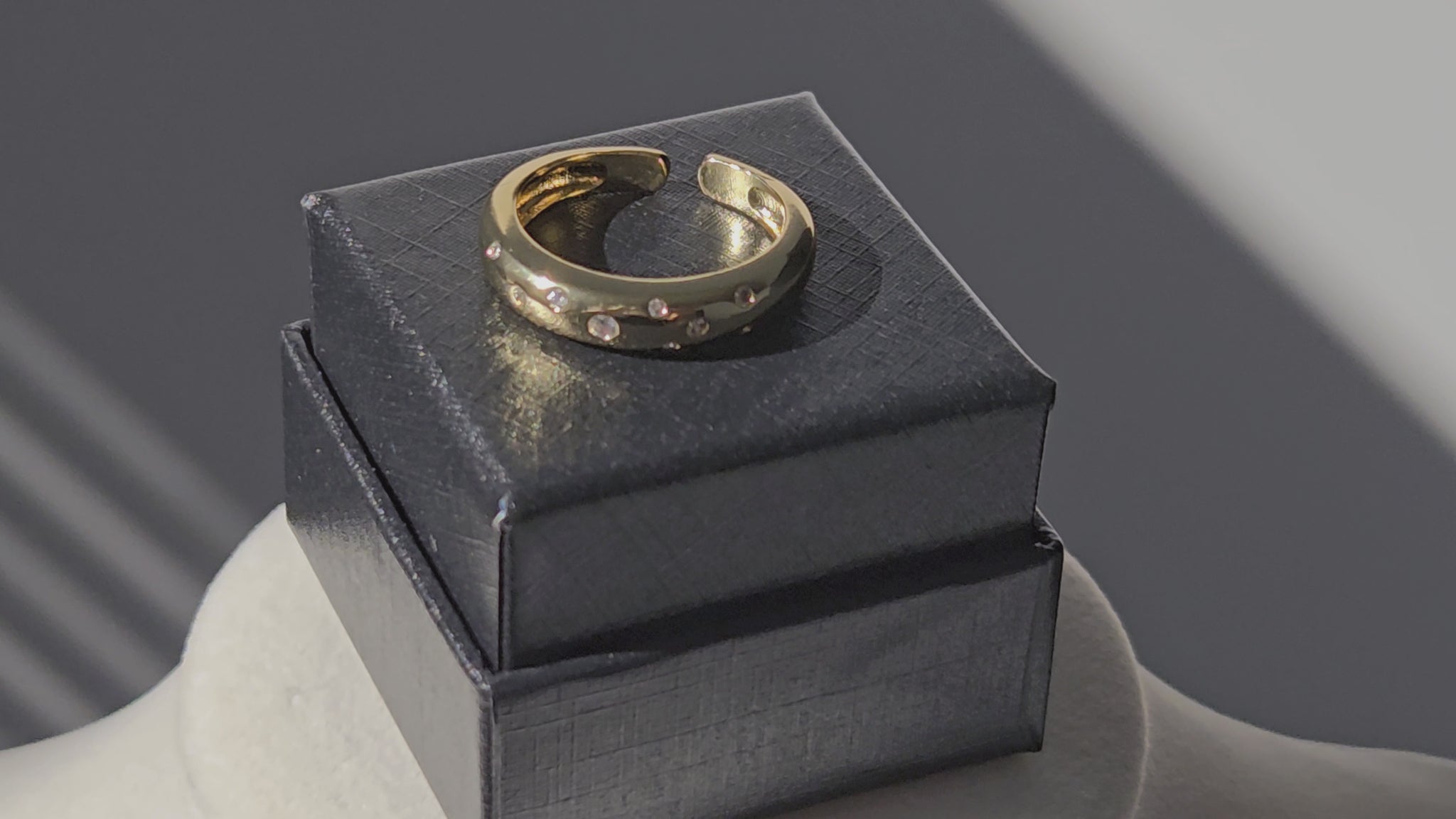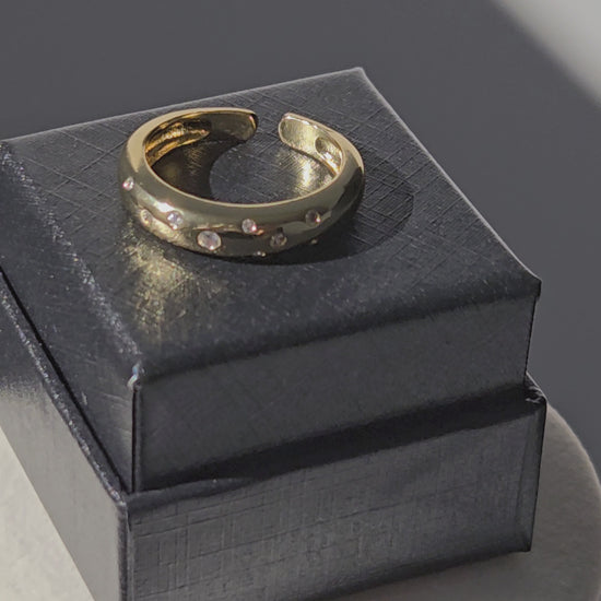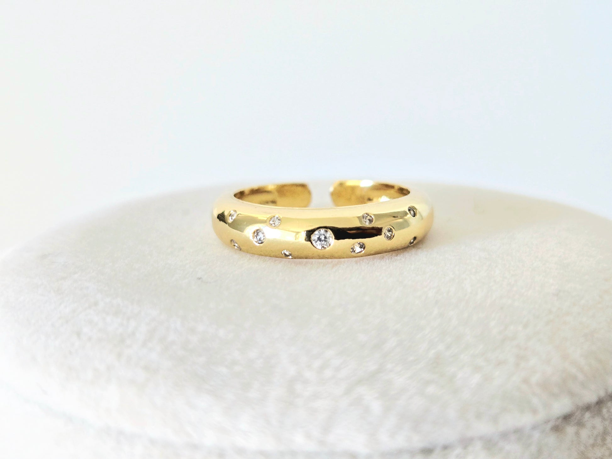 Meet Stella — the ring that brings soft, star-like sparkle to your everyday style. Designed with a smooth polished band and scattered crystal detailing, she’s the perfect blend of minimal and modern, luxe and wearable.