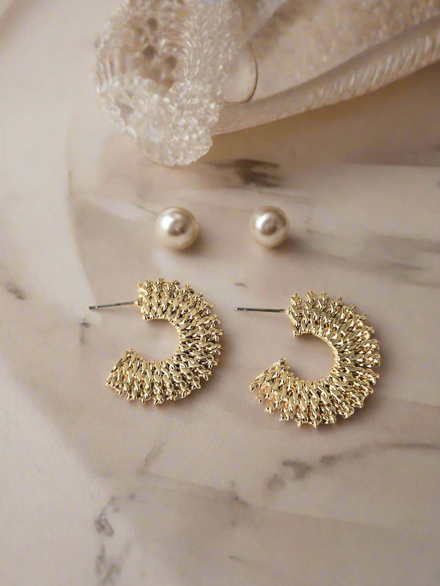 Zuri is the kind of earring that turns heads and sparks conversation. With a textured, layered design and rich gold or silver shine, this hoop adds just the right amount of edge to your everyday elegance. Whether you're stepping into a meeting or out for the night, Zuri completes the look with confidence.
